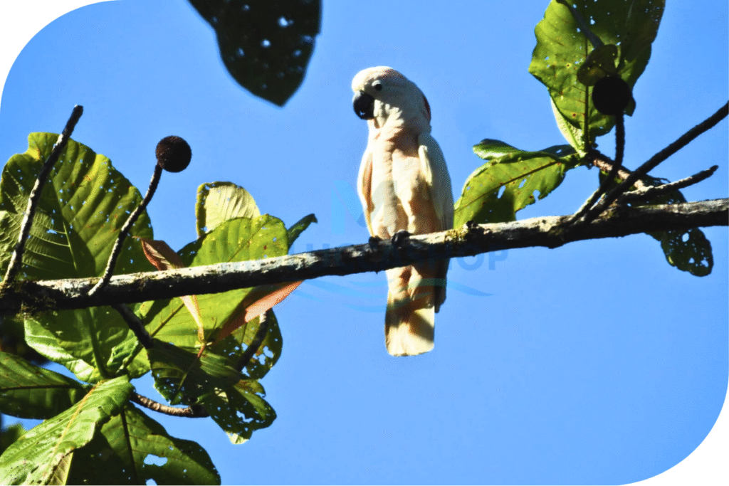 The Salmon-crested Cockatoo is endemic to Seram and nearby islands and is immediately recognizable by its large size, pale plumage, and dramatic salmon-pink crest. Its strong vocal presence, social behavior, and visibility in forested landscapes make it both a symbol of Seram’s biodiversity and a focal point for conservation.